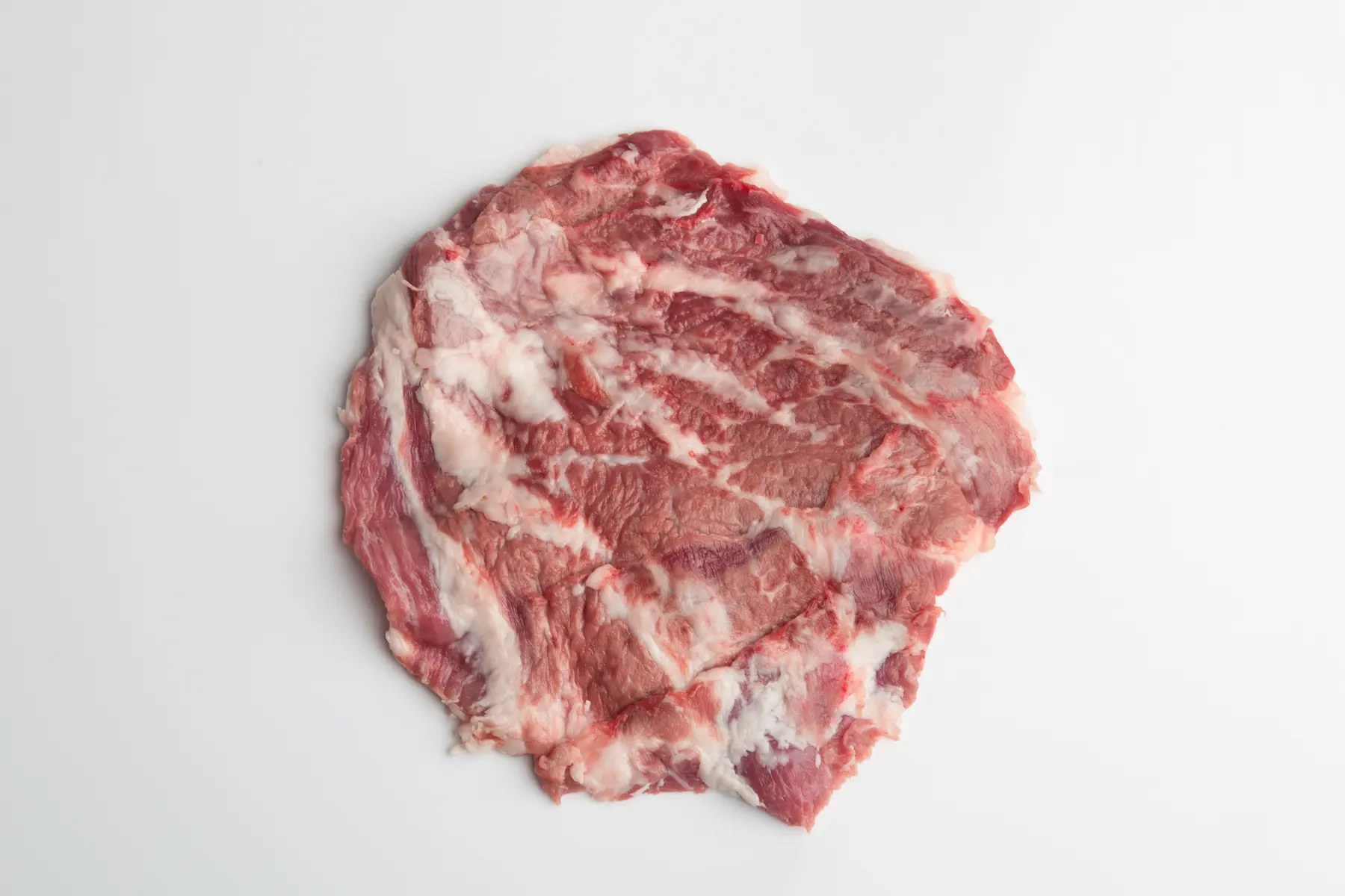 De medidas no uniformes. Es una pieza relativamente fino, muy infiltrada de grasa.