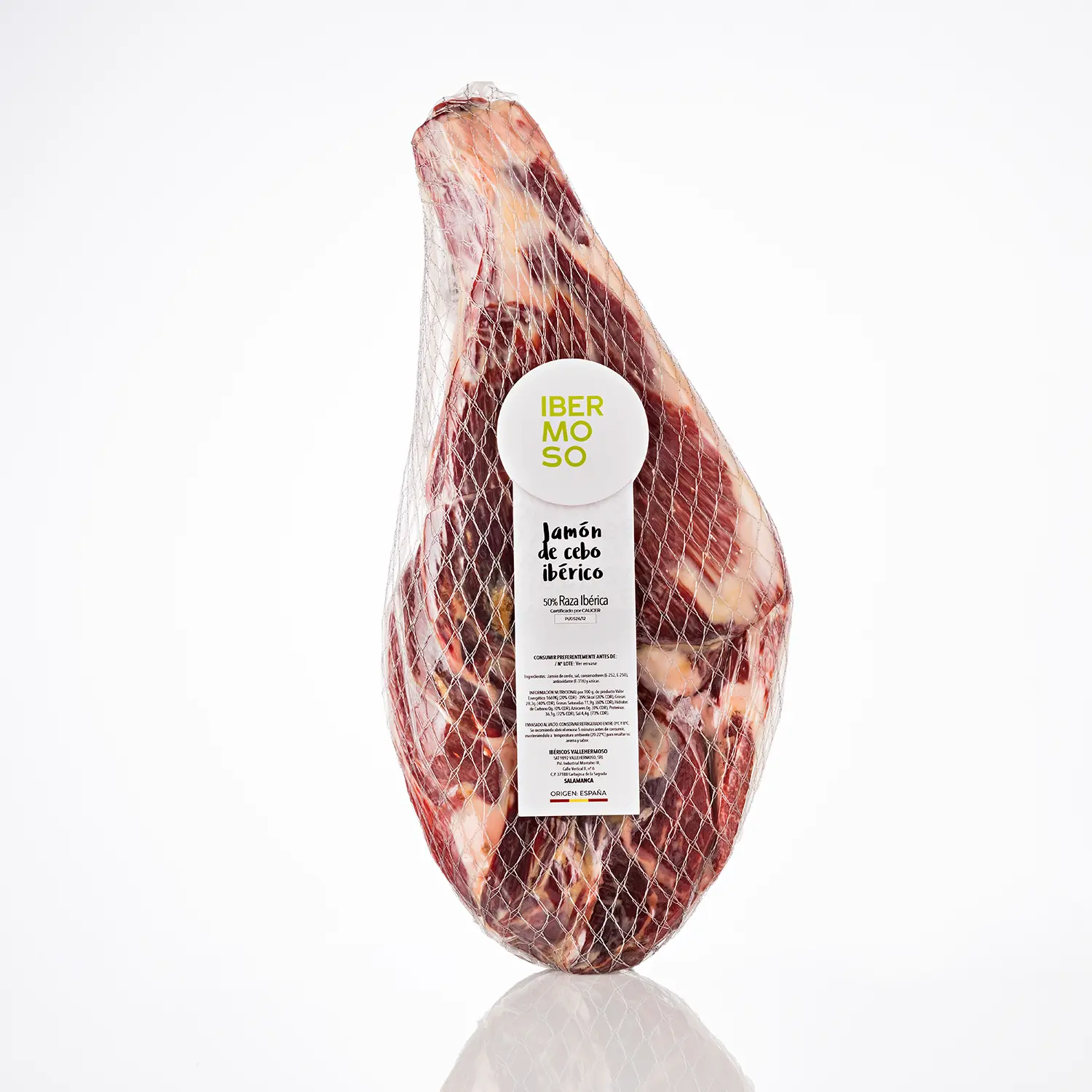El Jamón de cebo ibérico de IBERMOSO tiene un gran sabor y una excelente calidad. Tras un cuidadoso proceso de curación obtenemos jamones con el nivel perfecto de grasa infiltrada, lo que le aporta su característico aspecto veteado y una gran jugosidad que se aprecia tanto al cortarlo cómo al degustarlo.