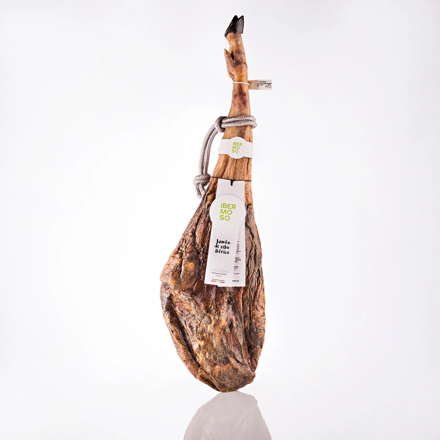 El Jamón de cebo ibérico de IBERMOSO tiene un gran sabor y una excelente calidad. Tras un cuidadoso proceso de curación obtenemos jamones con el nivel perfecto de grasa infiltrada, lo que le aporta su característico aspecto veteado y una gran jugosidad que se aprecia tanto al cortarlo cómo al degustarlo.