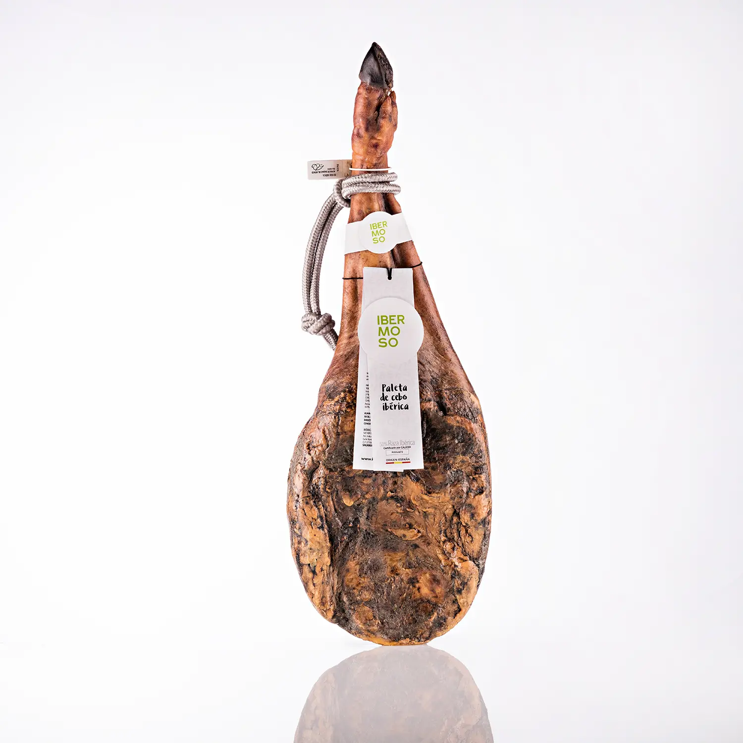 La Paleta de cebo ibérica de IBERMOSO tiene un gran sabor y una excelente calidad. Tras un cuidadoso proceso de curación obtenemos jamones con el nivel perfecto de grasa infiltrada, lo que le aporta su característico aspecto veteado y una gran jugosidad que se aprecia tanto al cortarlo cómo al degustarlo.